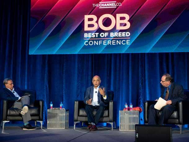 “To reach the vast majority of the market, it’s got to be through you,” Krishna told attendees at the 2021 Best of Breed (BoB) Conference in Atlanta, hosted by CRN parent The Channel Company. Krishna (pictured center) took questions from Robert Faletra (pictured left), executive chairman of The Channel Company, and Steven Burke (pictured right), editor news at CRN.