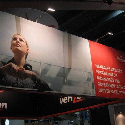 Verizon was on hand to talk about how it manages identity programs for businesses and government agencies in over 50 countries. Sorry, but the woman pictured here doesn't look like she's working very diligently toward this goal.